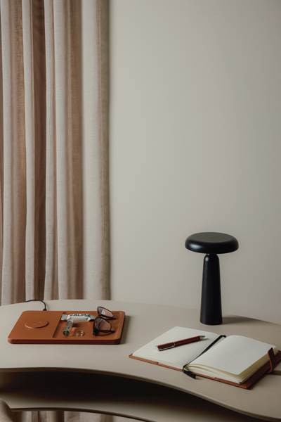 Dotyková stolová lampa z RCS, čierna. V cene tovaru je zahrnutý recyklačný príspevok na likvidáciu elektroodpadov vo výške 0,04 €.